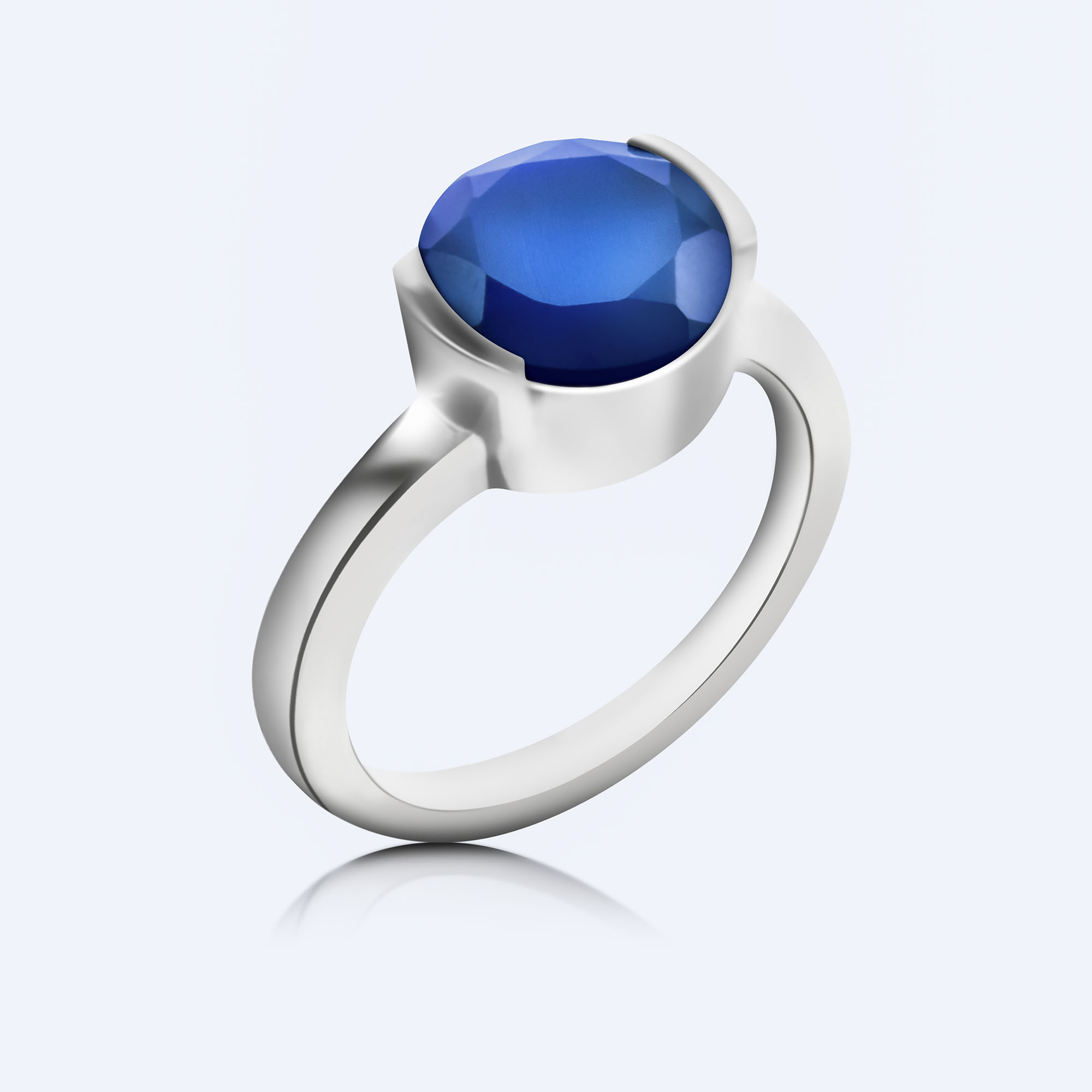 Okrągłe oczko w kolorze „błękitnego” onyksu o wymiarach 10 na 10 mm.